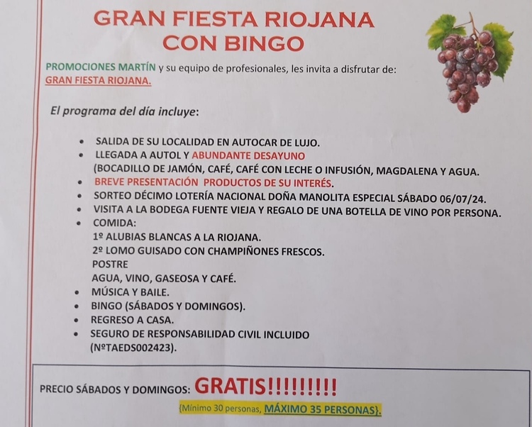 La excursión incluye el autobús, desayuno, comida y actividades totalmente gratuitas, Sí“LO EL 30 DE JUNIO DE 2024.
