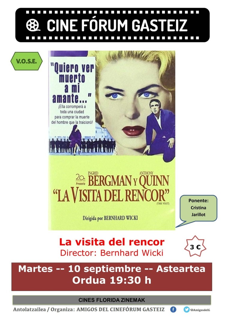 Os informamos de que la película que se proyectará el próximo martes 10 de septiembre a las 19:30 en los cines Florida es la siguiente: