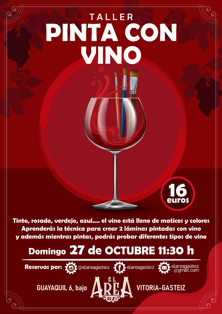 El vino está lleno de matices y colores y es sorprendente el resultado que se consigue al pintar con él. Este será un evento para mojar los pinceles con vino experimentar, aprender algunos trucos, tomar alguna copita y socializar.